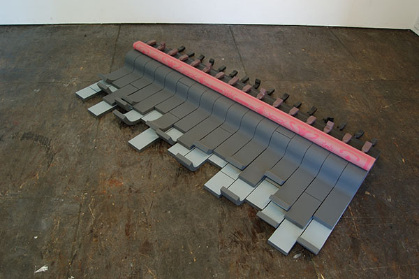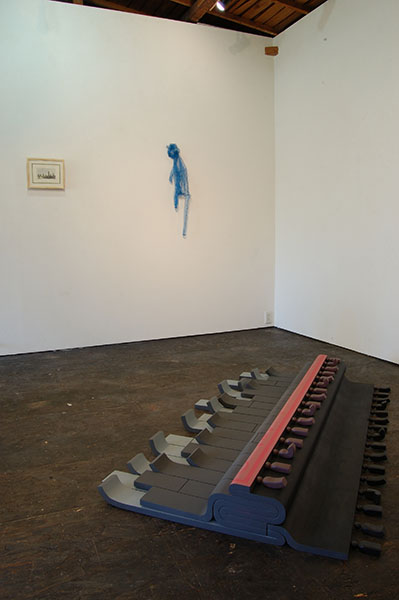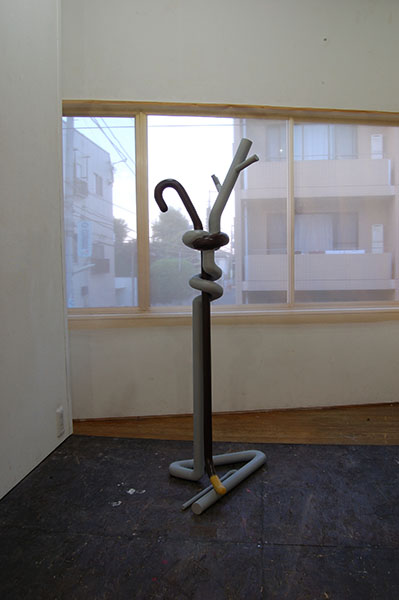 ただし、武藤さんが生み出す作品が他者との話の中に出てきた通りの形態をとるかと言えば、それはまた違って、普通まっすぐに伸びる樹木がいびつに折れ曲がっていたり、平らなはずの水面が跳ね上がっていたり、話に出てきたイメージの一部分だけが切り取られたり、あるいは、くっついていたりするのである。どうやら、武藤さんという聞き手のフィルターを通って他者の記憶やイメージが現実に立ち現れようとする際、時空にズレが生じ、その形態に異変が起きてしまうようなのである。そして不思議なことに、その奇妙な形の作品によって、基の話の空間がより魅力的なものに変わっていく。